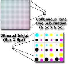 Dye-sublimation differs greatly from inkjet in many ways, most significantly in quality. Dye-sub is known for its high quality and continuous tone output. Continuous tone means that all gradations of color are used when creating an image. For example, when creating a gray scale, from black to white, a continuous tone printer will show all shades of gray in between the black and the white by actually printing them. A half-toning device such as an ink-jet printer will use a dithering technique of placing dots close together in order to trick the eye. In other words, ink jet printers use a series of black dots placed close to white dots in order to trick the eye into blending the pixels when viewed. With magnification the difference can be seen where the dye-sub output is clear and sharp but dots can be seen on ink-jet prints. For more details on the Hi-Ti range of Dye Sublimation - Click Here
